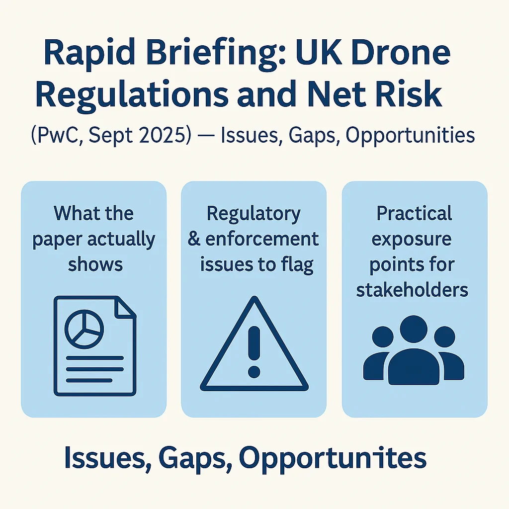 As a drone lawyer, my reading of the PwC paper is that the safety record increasingly supports predictable, rules-based authorisations, but the UK still applies bespoke processes that create delay, cost and legal uncertainty. The winners will be those who treat compliance as an operational capability, not a paperwork chore.